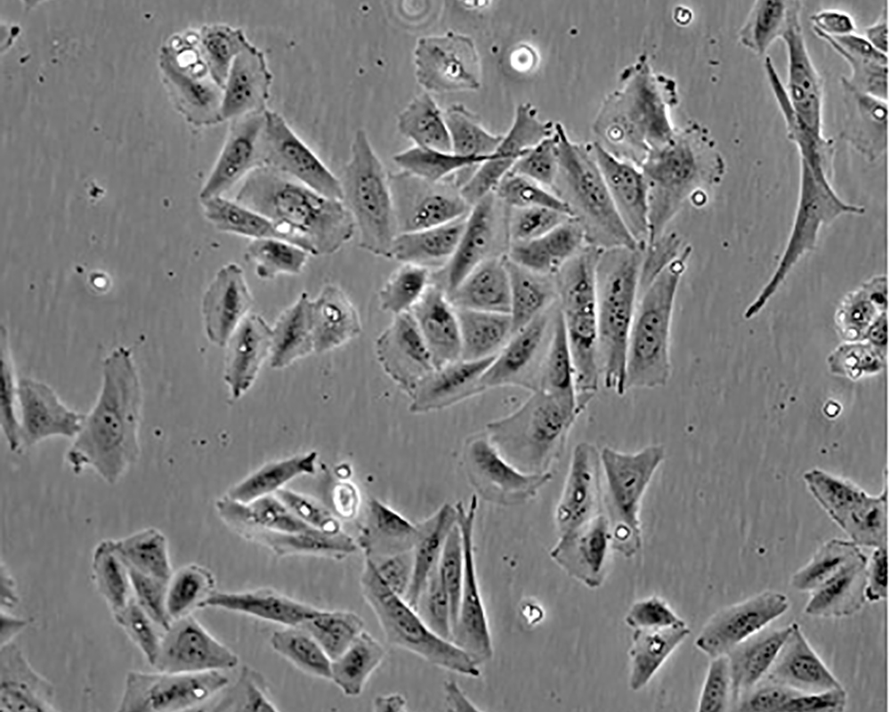 該細(xì)胞是FoghJ和TrempeG分離和鑒定的眾多人類腫瘤細(xì)胞系中的一種;該細(xì)胞來自一位11歲的白人女性的骨肉瘤組織。患者經(jīng)過放療以及氨甲喋呤、阿霉素、長春新堿、環(huán)磷酰胺和aramycin-C等多種藥物治療。該細(xì)胞在免疫抑制小鼠中不致瘤,細(xì)胞表達(dá)表皮生長因子EGF受體、轉(zhuǎn)化生長因子β(1型和2型)受體。 |